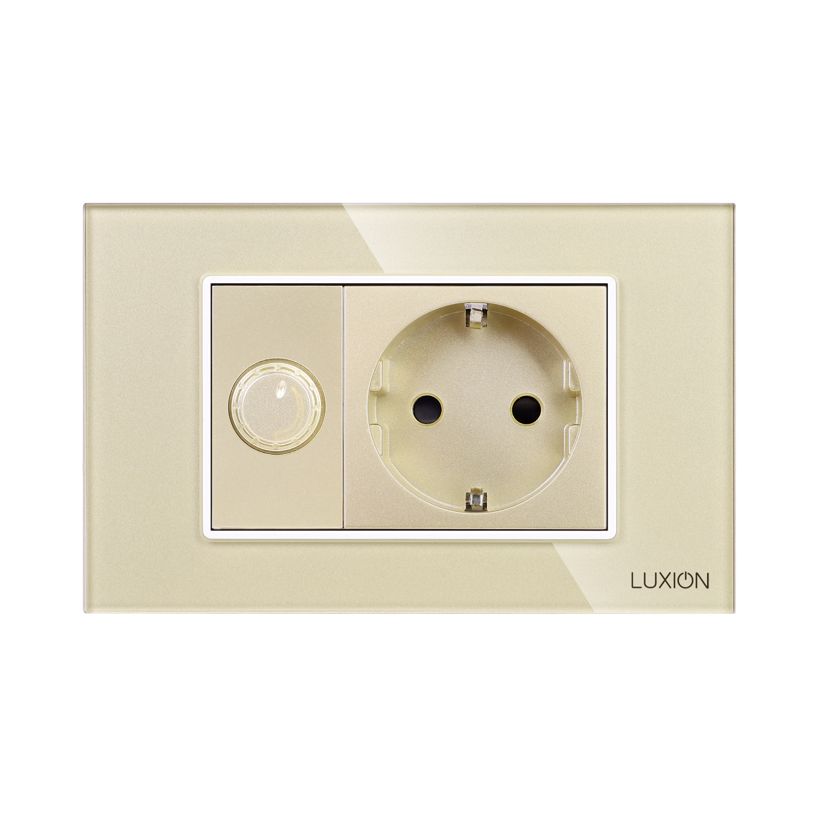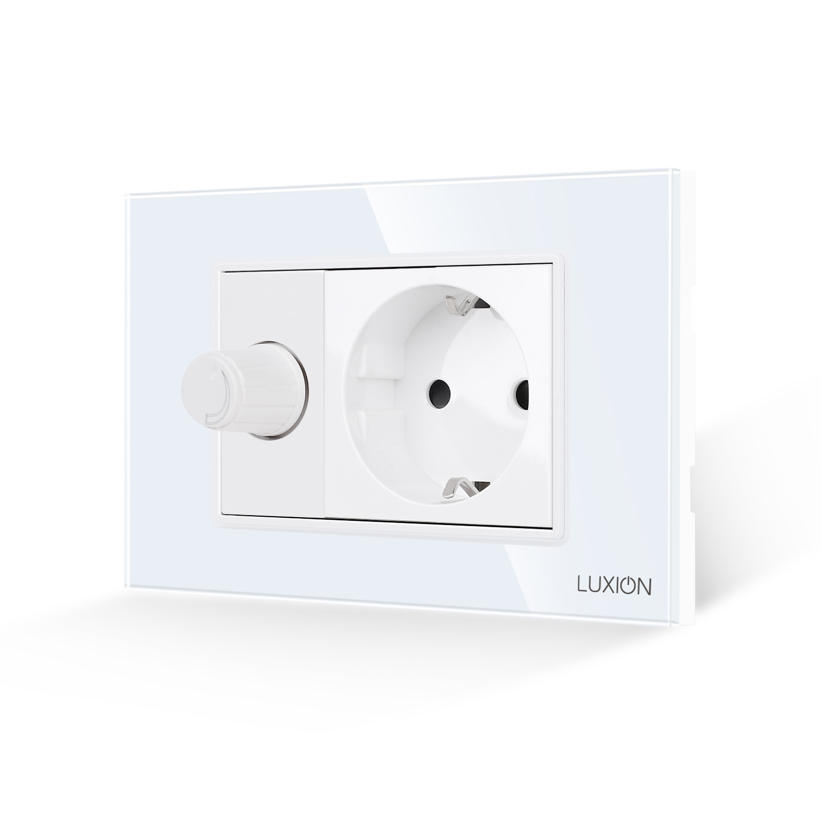 Dimmer meccanico e presa semplice LUXION con cornice in vetro, standard italiano, 3M – la soluzione ideale per la tua casa o il tuo spazio.
