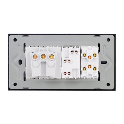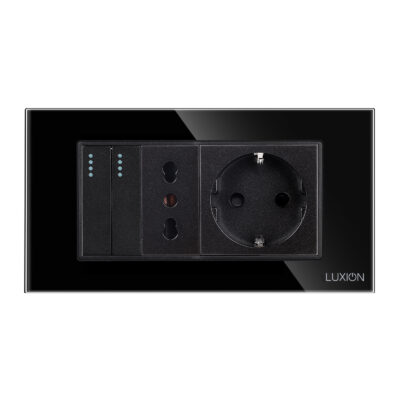Doppio deviatore + presa stretta + presa Schuko con placca in vetro Luxion, standard italiano, 4 moduli – la soluzione ideale per la tua casa o il tuo spazio. Goditi un design raffinato e funzionale, con attenzione ai dettagli. LUXION si integra perfettamente in qualsiasi ambiente.