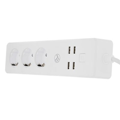La multipresa intelligente offre tre prese controllabili singolarmente e quattro porte USB, che possono essere azionate da remoto tramite l'applicazione Tellur Smart. Inoltre, la multipresa può essere controllata tramite comandi vocali, utilizzando Google Assistant o Amazon Alexa. Il funzionamento della multipresa può essere personalizzato grazie agli scenari nell'app. Così, puoi programmare ogni presa in modo indipendente per funzionare in un determinato intervallo di tempo. La funzione timer ti consente di impostare la durata di funzionamento di ogni presa in base alle tue esigenze, per evitare il sovraccarico dei dispositivi. Le quattro porte USB possono essere impostate e controllate contemporaneamente.