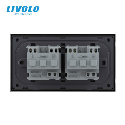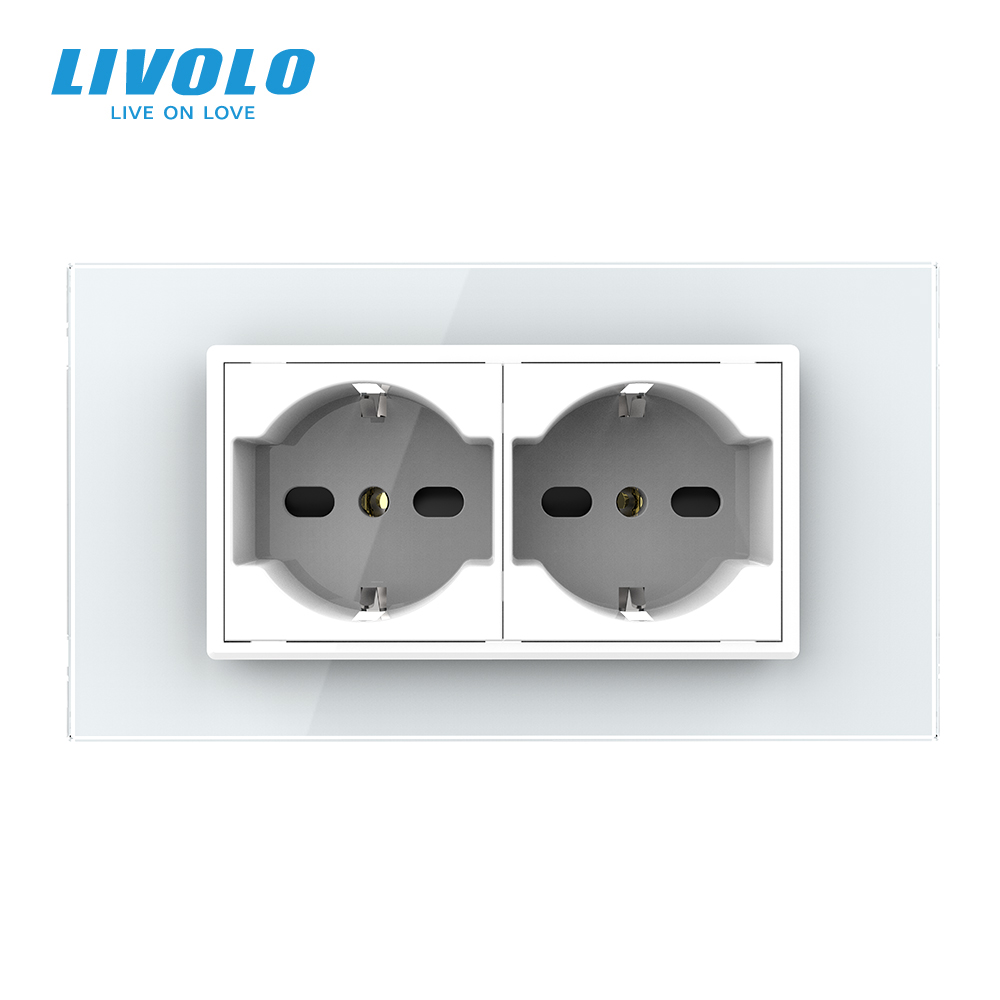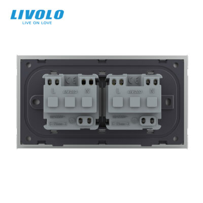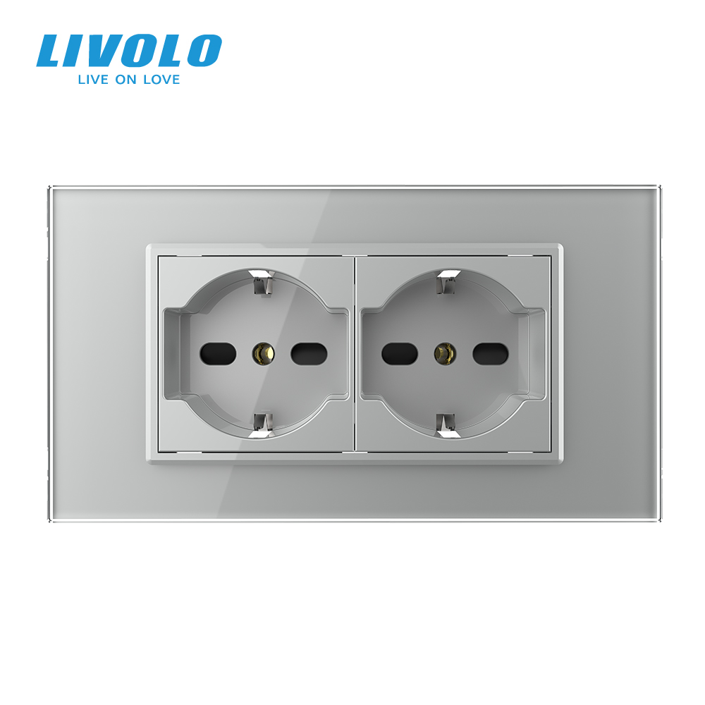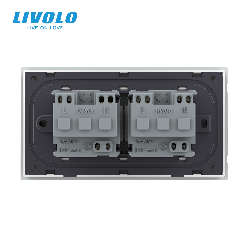 Presa doppia Livolo con cornice in vetro, standard italiano per case, uffici, spazi commerciali, hotel. Prodotti moderni di alta qualità. Contiene 2 prese elettriche a muro. Offre eleganza alla tua casa con prodotti innovativi.