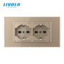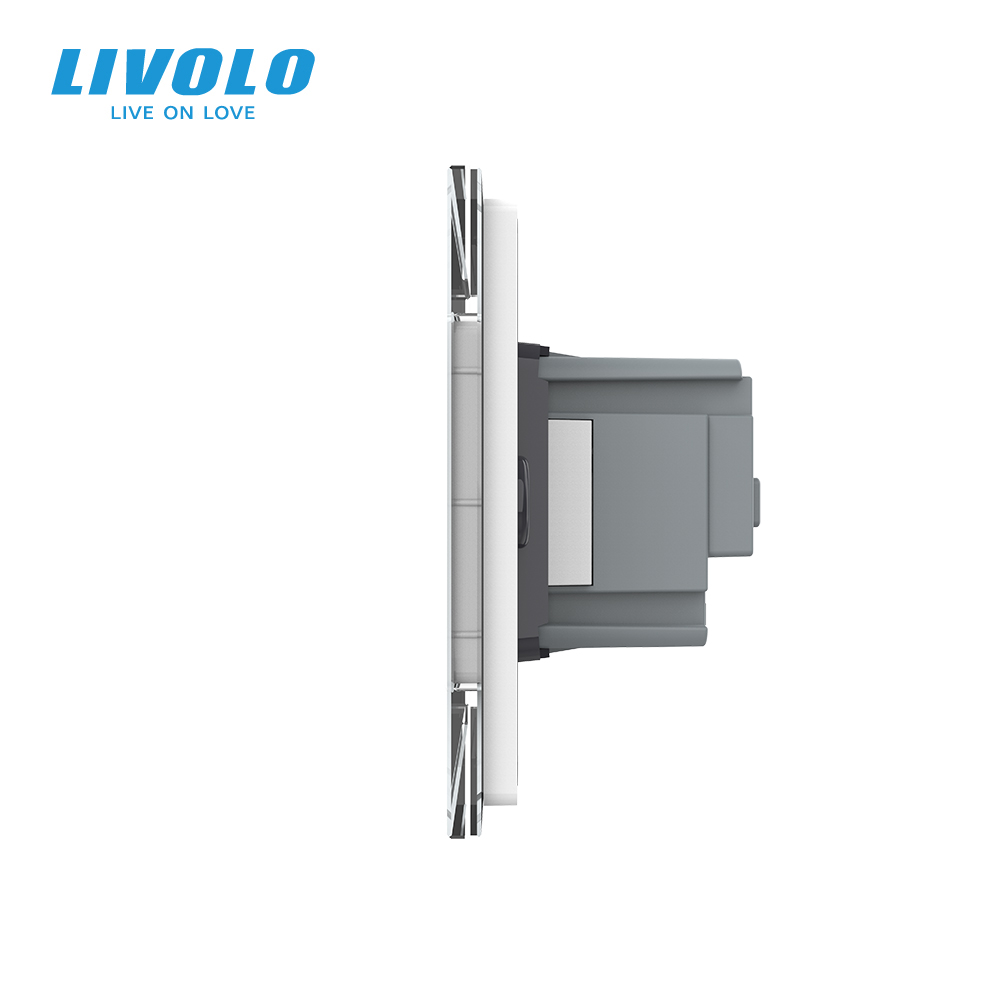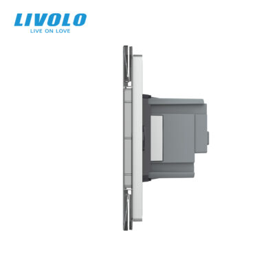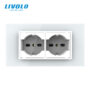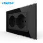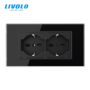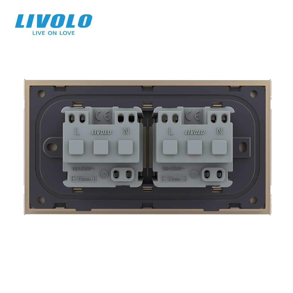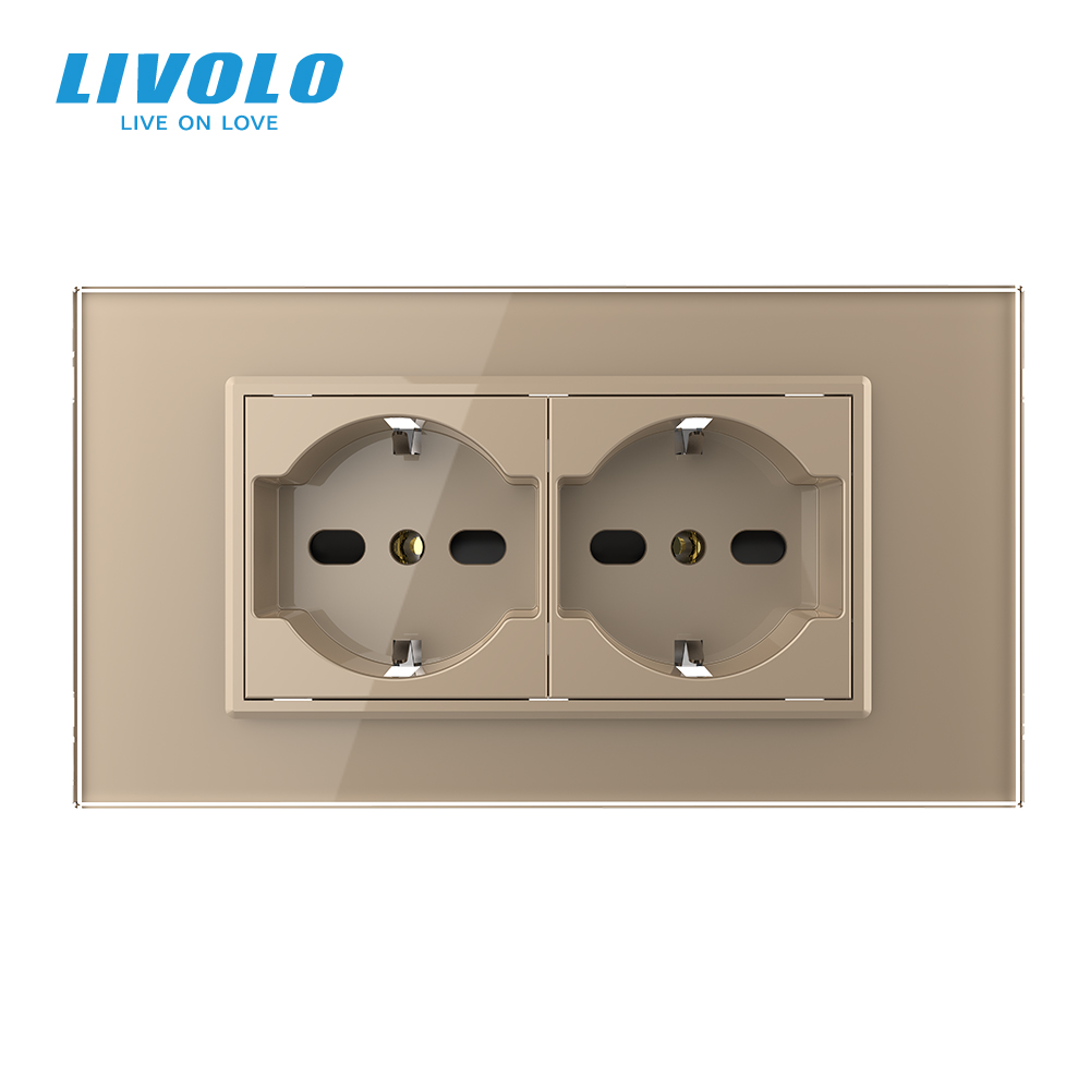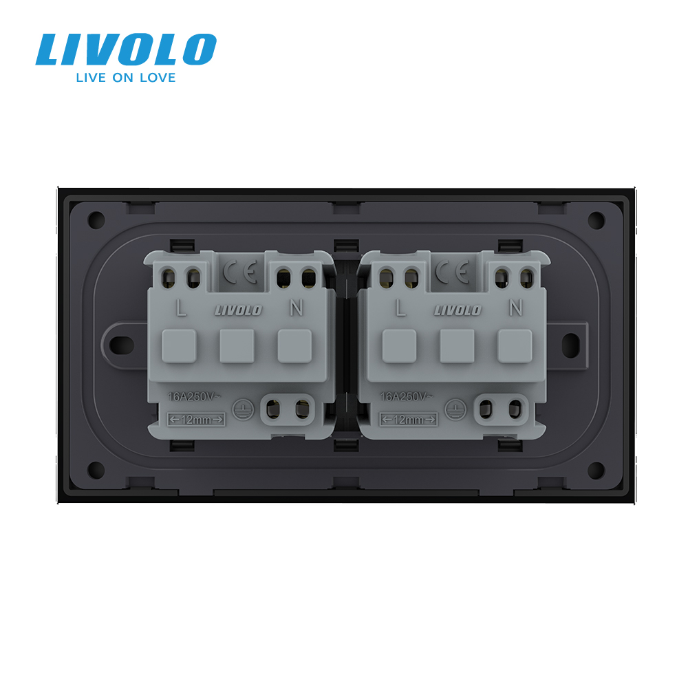 Presa doppia Livolo con cornice in vetro, standard italiano per case, uffici, spazi commerciali, hotel. Prodotti moderni di alta qualità. Contiene 2 prese elettriche a muro. Offre eleganza alla tua casa con prodotti innovativi.
