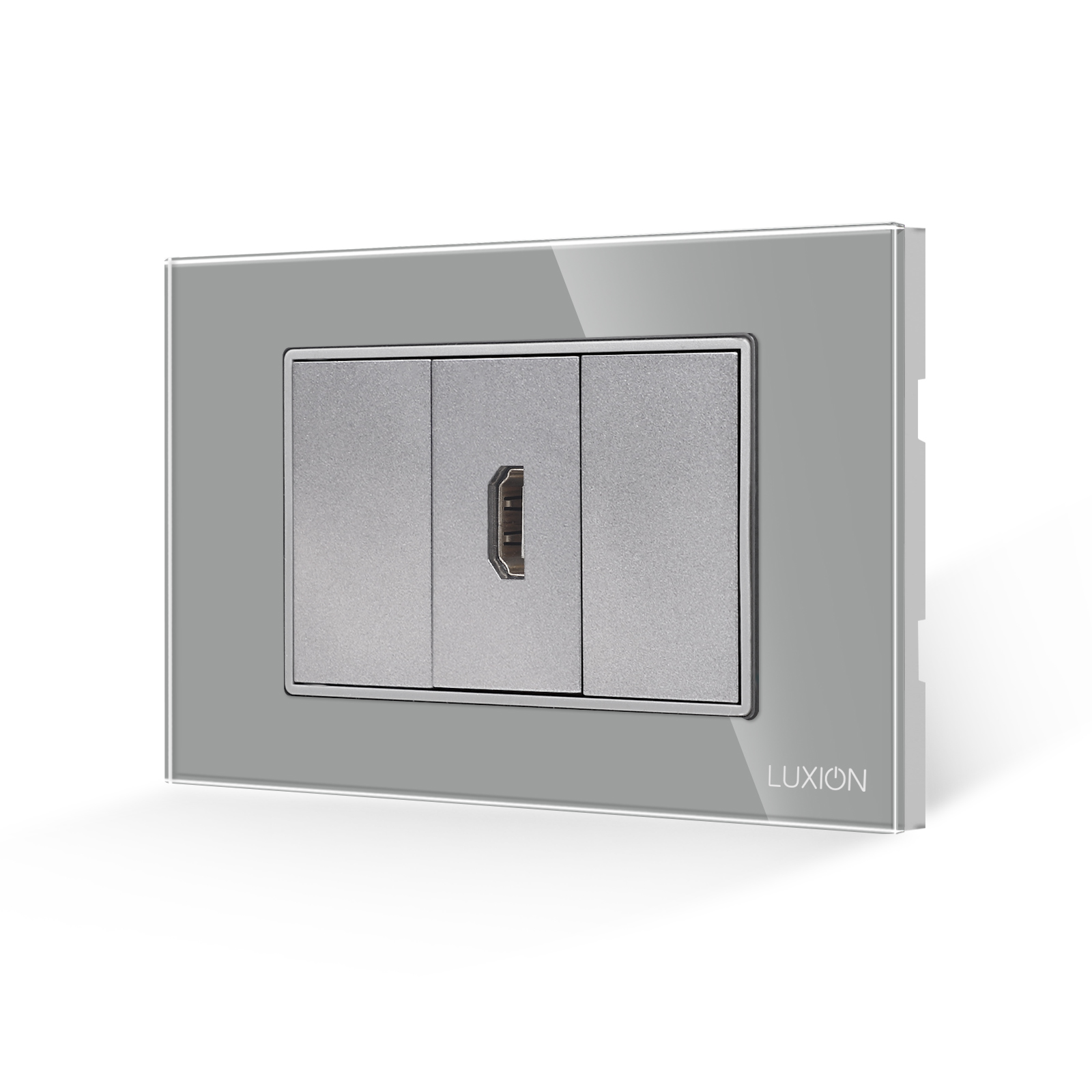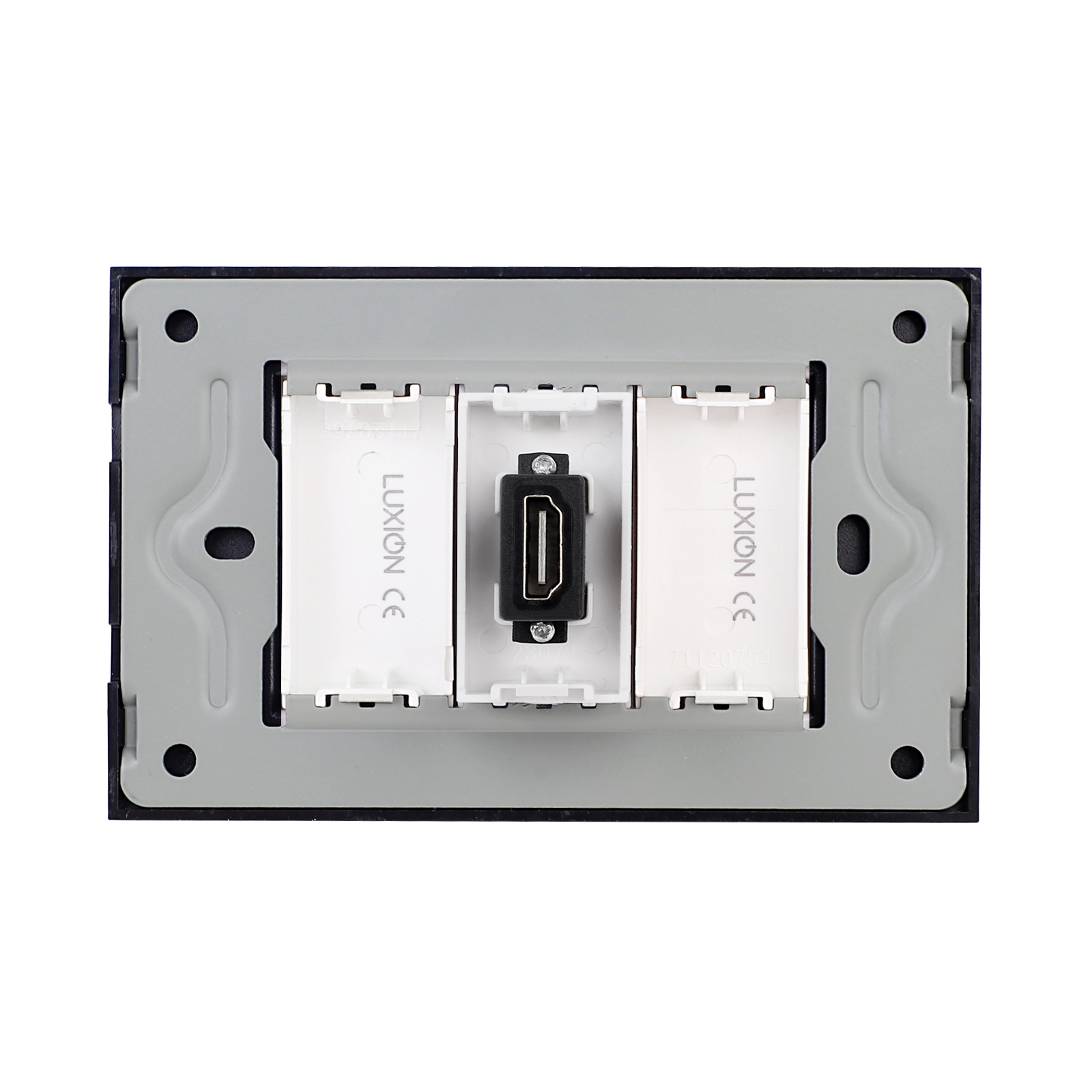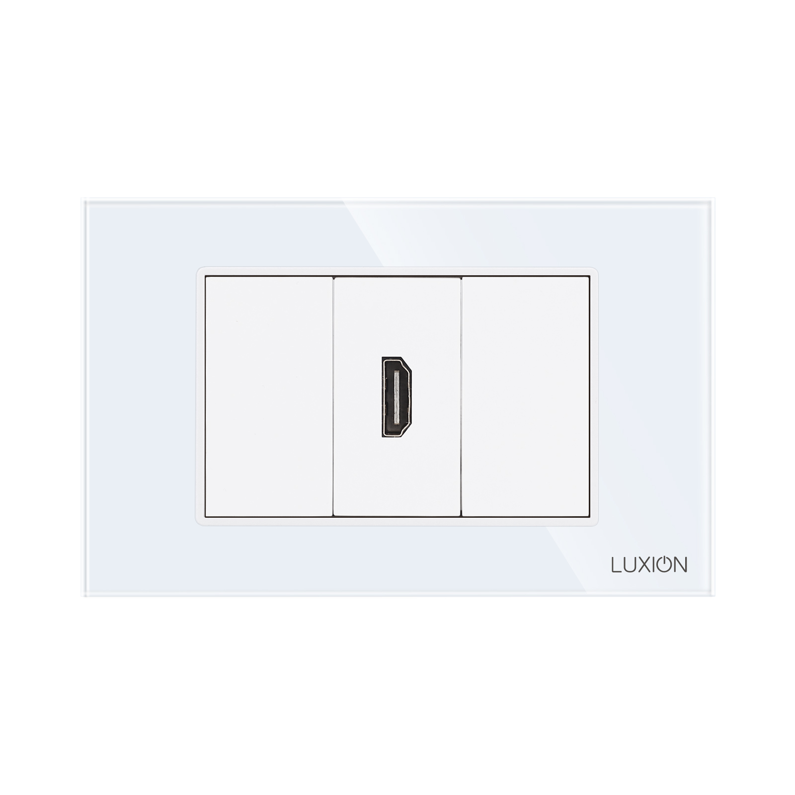Presa HDMI + 2 tasti falsi LUXION con placca in vetro, standard italiano, 3 Moduli