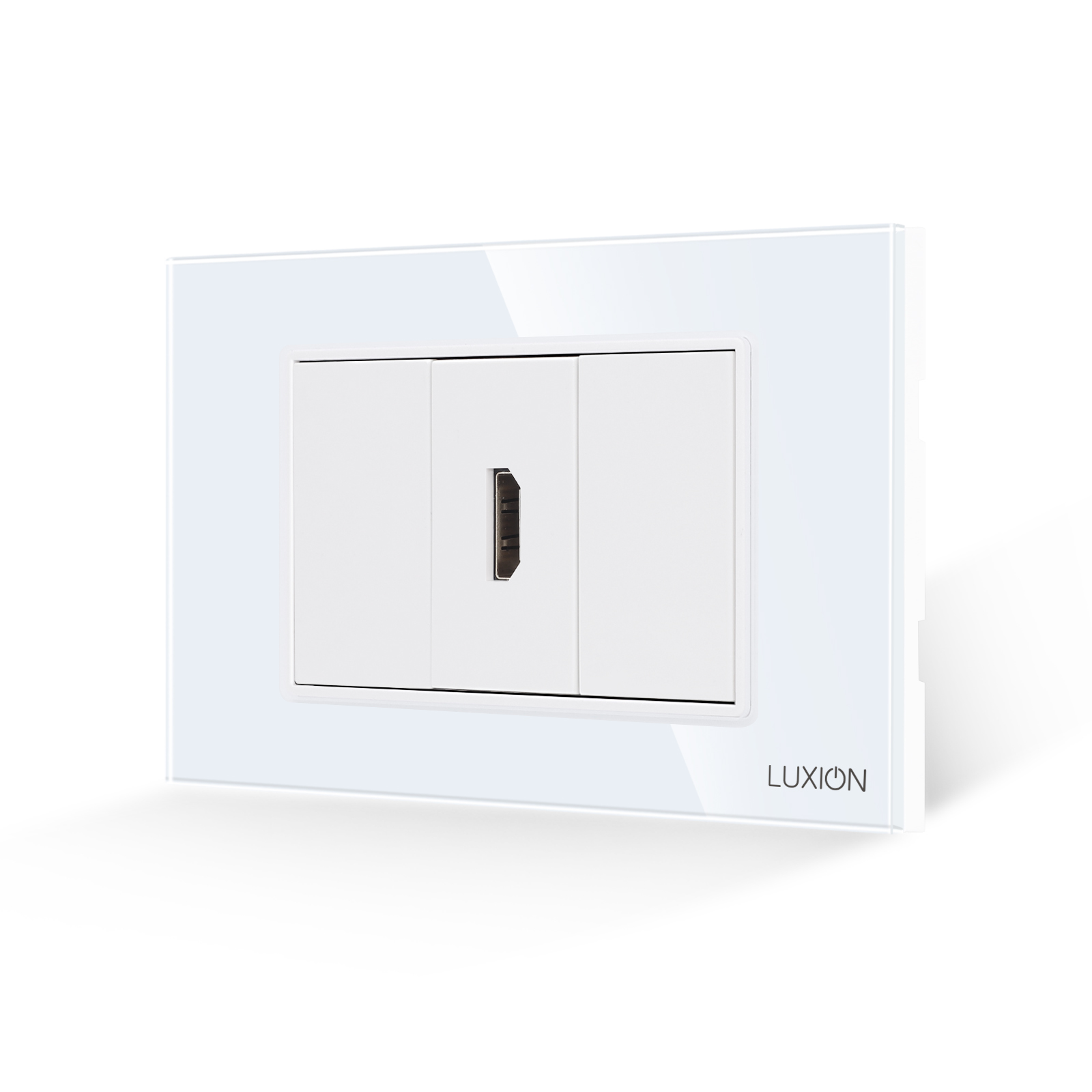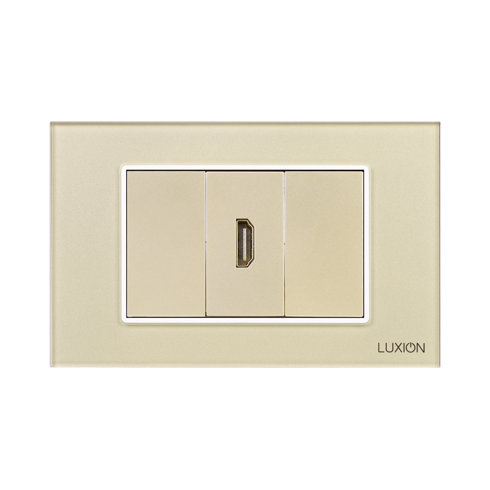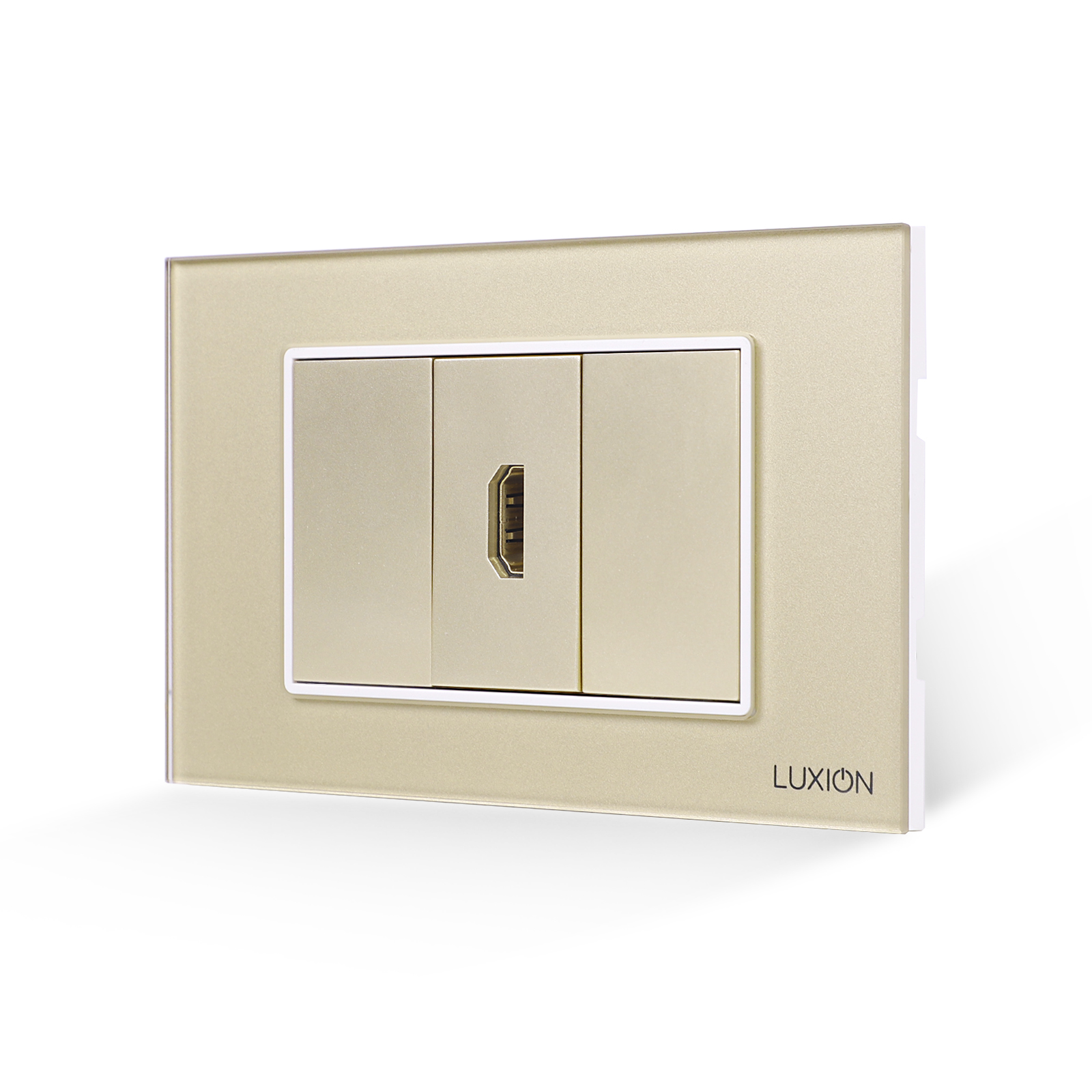 Presa HDMI + 2 tasti falsi LUXION con placca in vetro, standard italiano, 3 Moduli