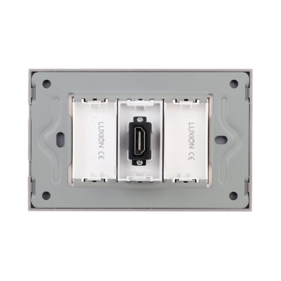 Presa HDMI 1 Modulo e 2 tasti falsi LUXION con placca in vetro, standard italiano, 3 Moduli – la soluzione ideale per la tua casa o il tuo spazio. Goditi un design raffinato e funzionale, curato nei minimi dettagli. LUXION si integra perfettamente in qualsiasi ambiente.