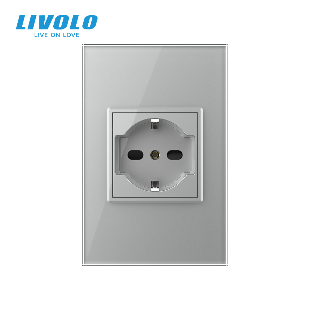 Presa Semplice Italiana (2P+T) Livolo con cornice in vetro 2M
