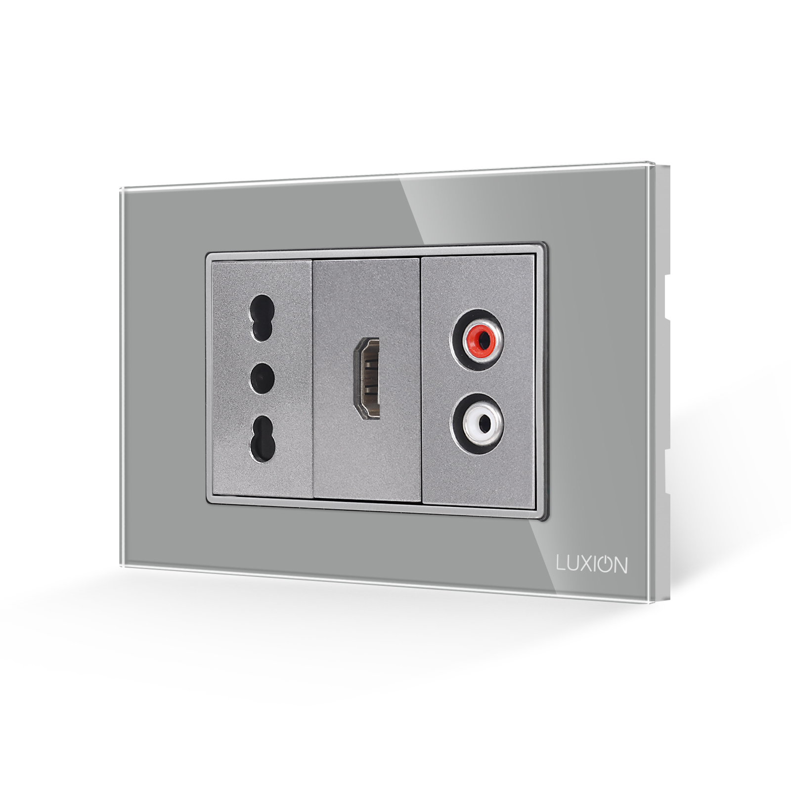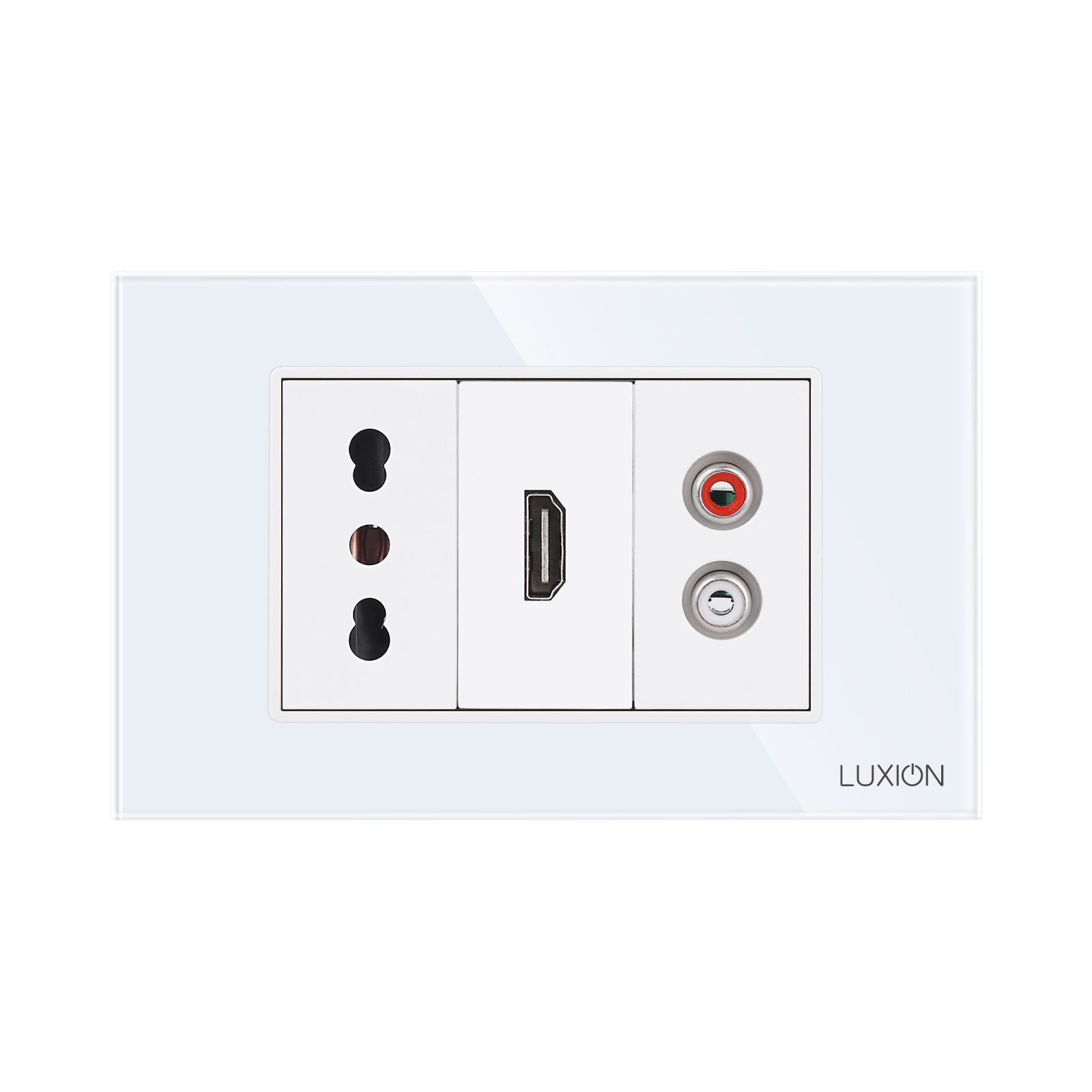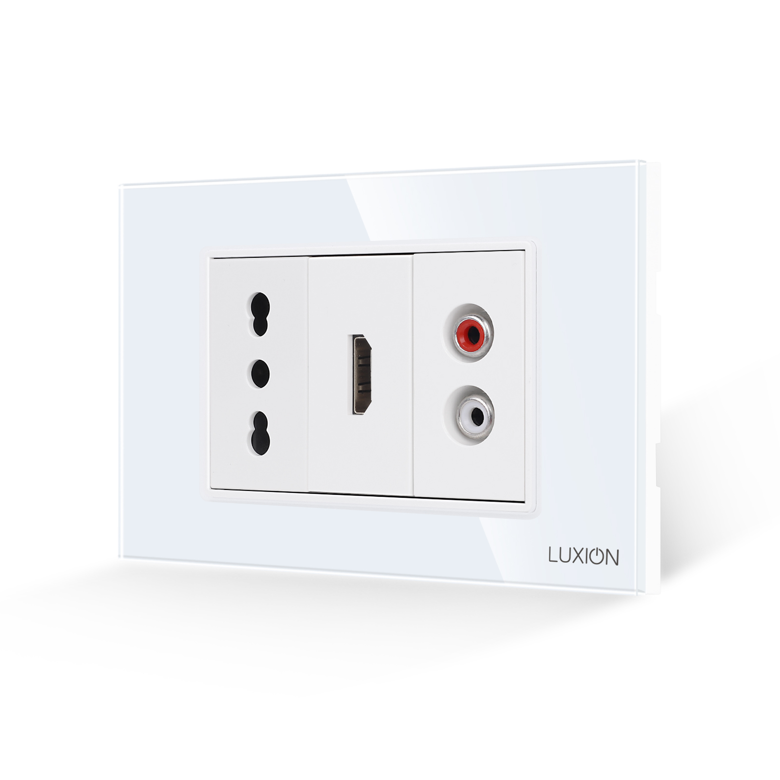 Presa stretta + HDMI + audio con cornice in vetro LUXION, standard italiano, 3M