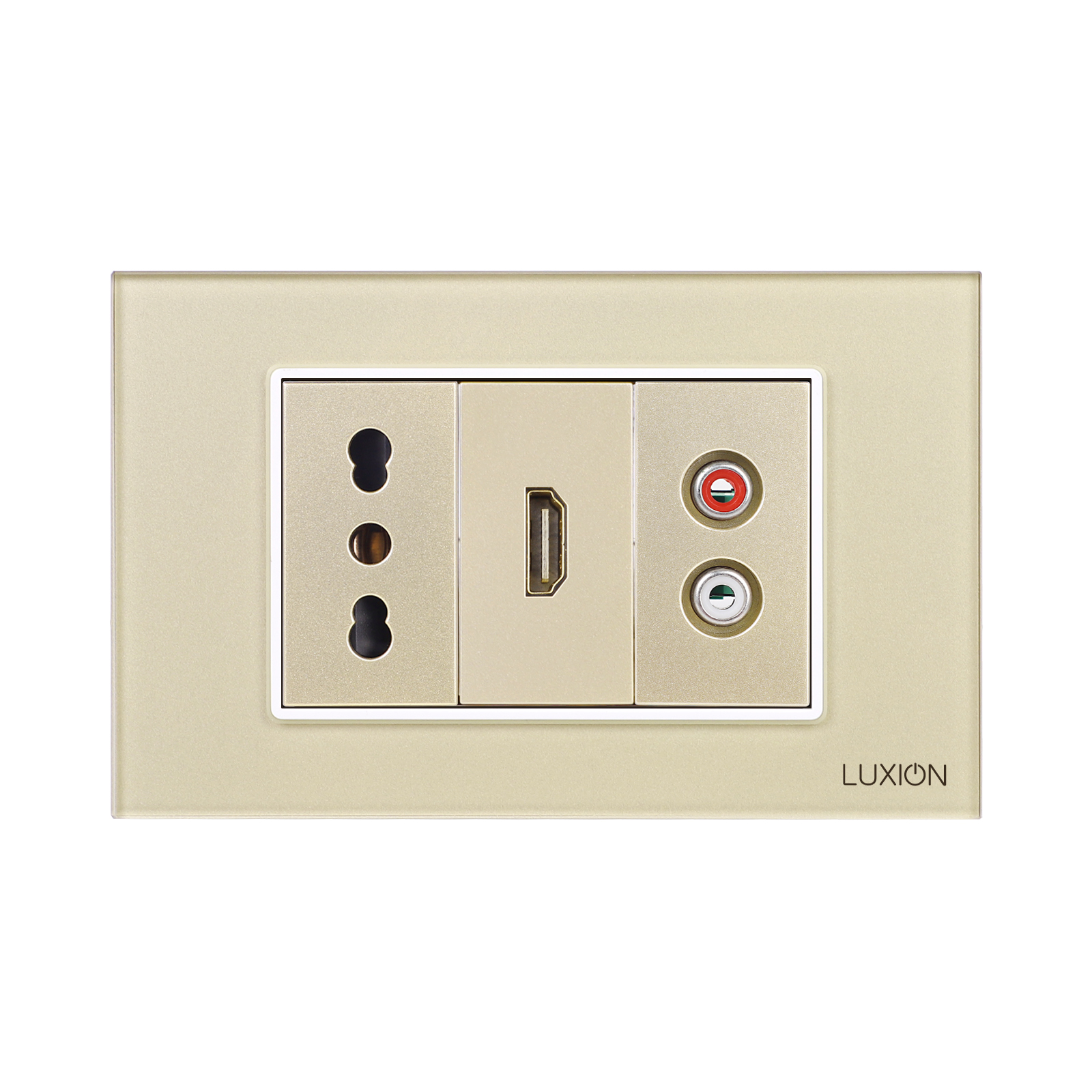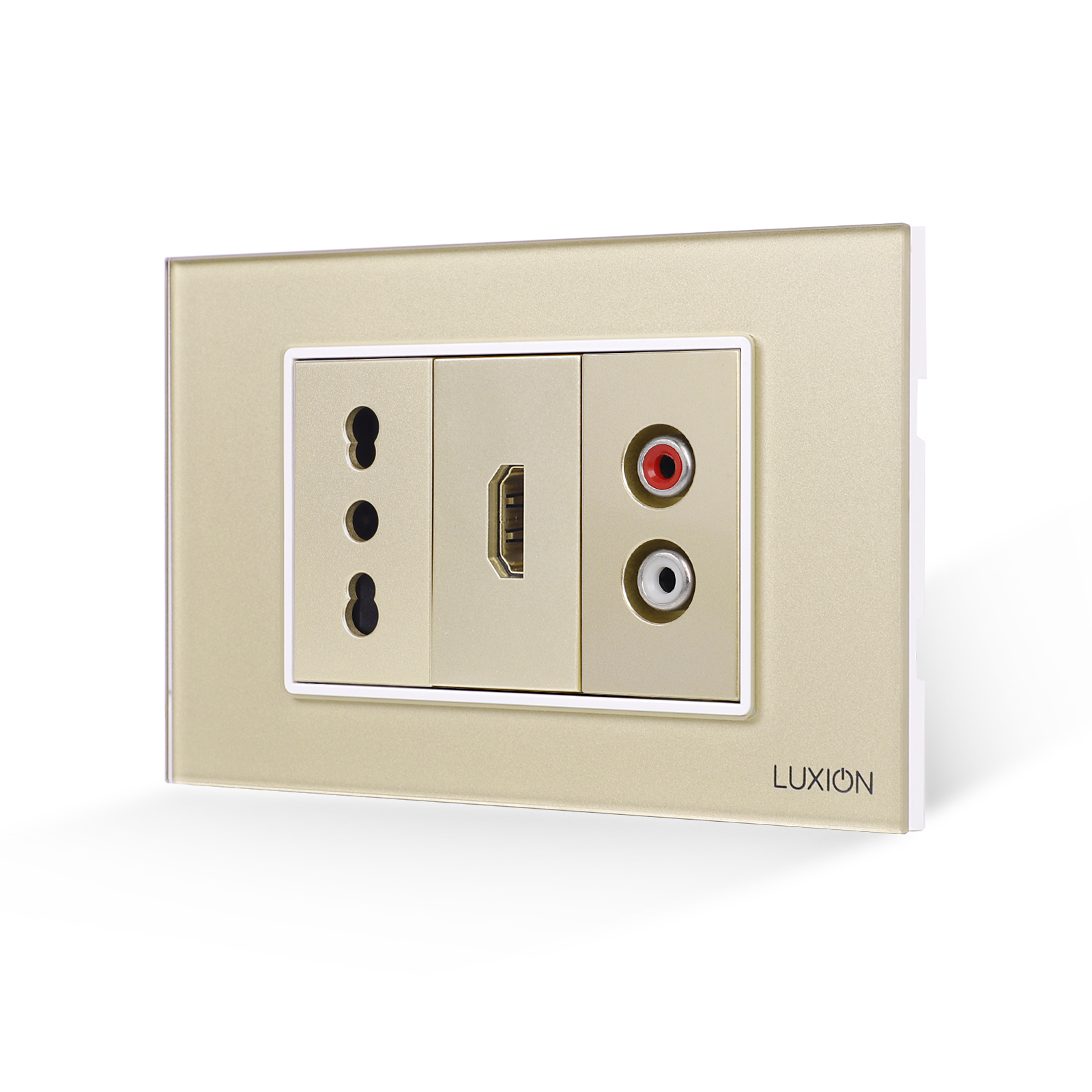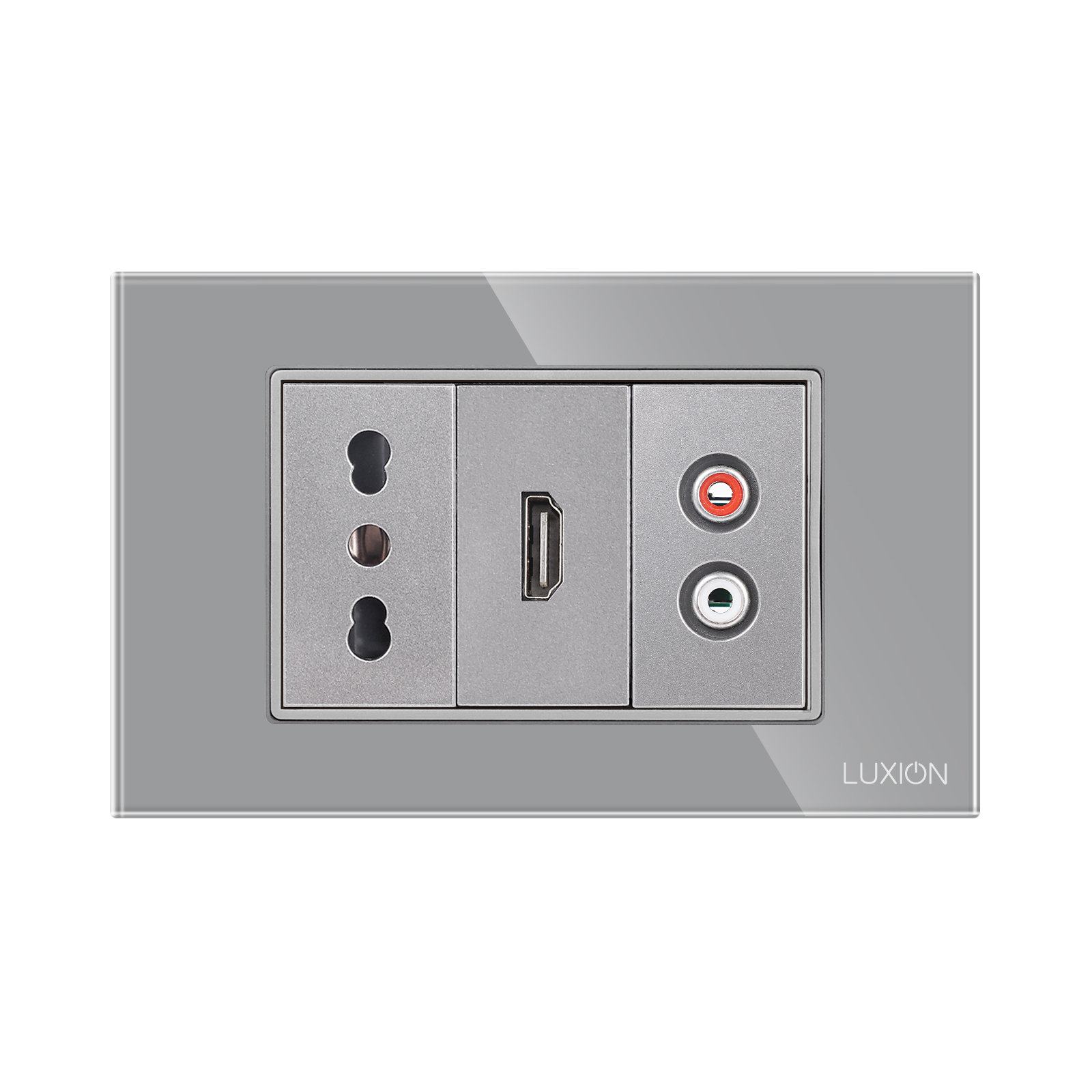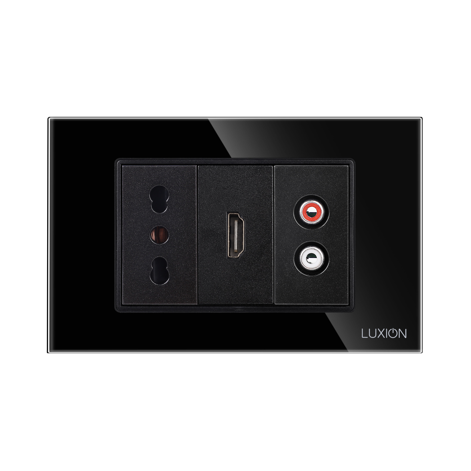 Presa stretta + HDMI + audio con cornice in vetro LUXION, standard italiano, 3M